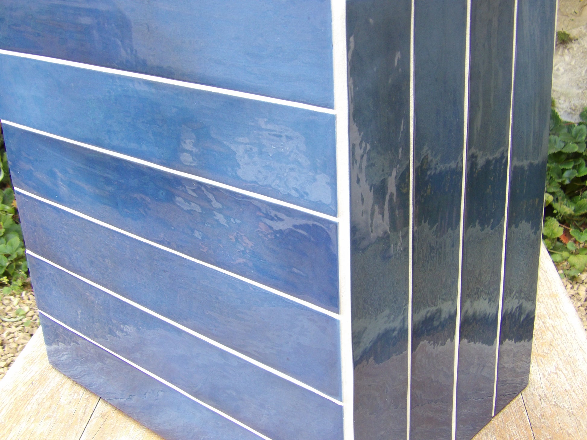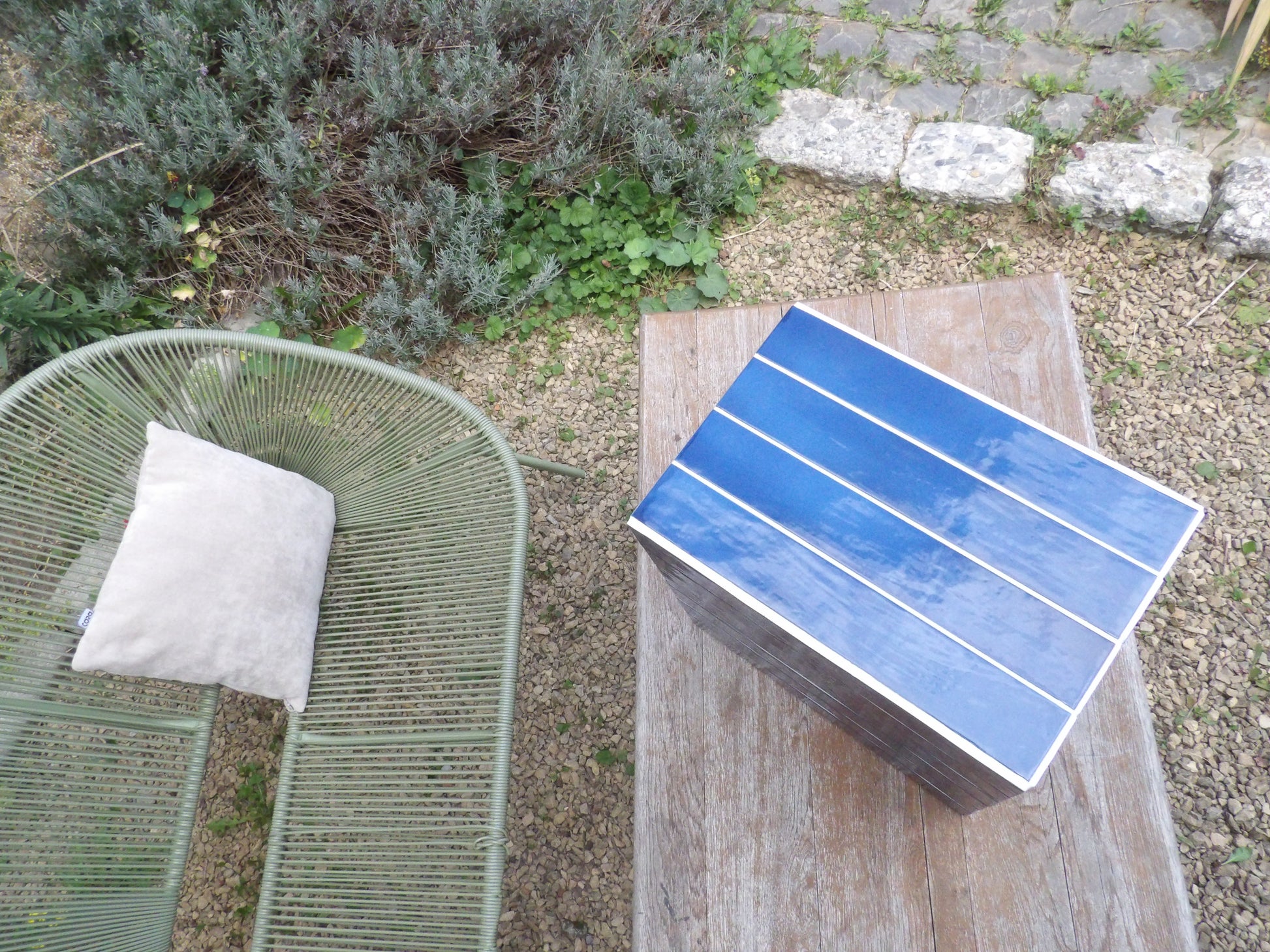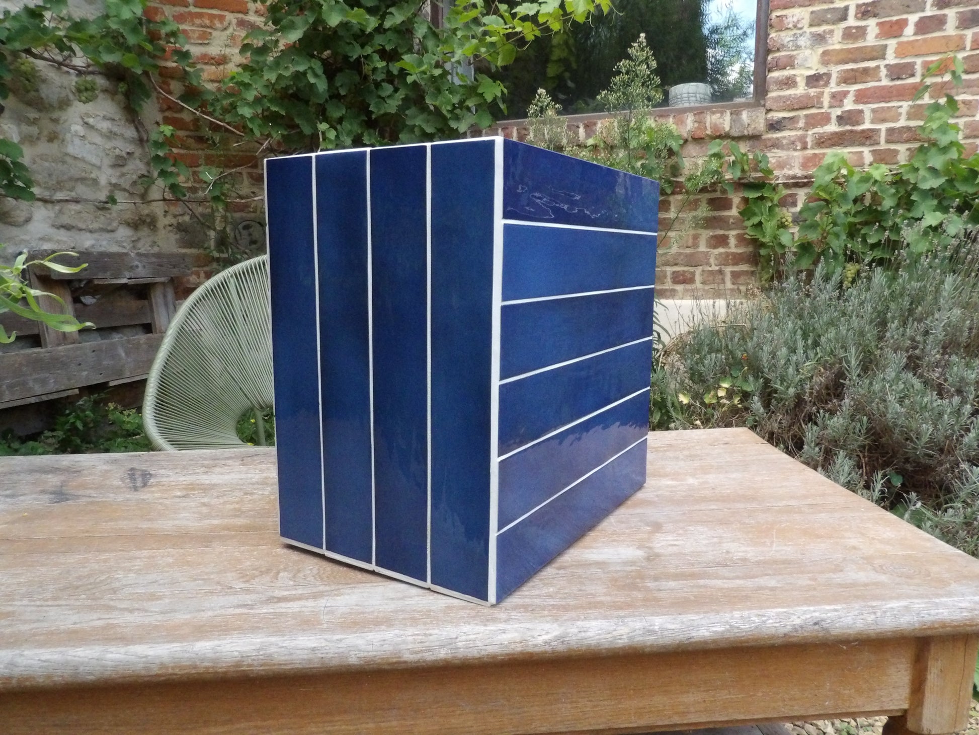 Une jolie Box bleue océan linéaire. Une pièce originale qui habillera une salle de bain, un coin du séjour. Elle peut également se placer en 'bout de canapé' par exemple.