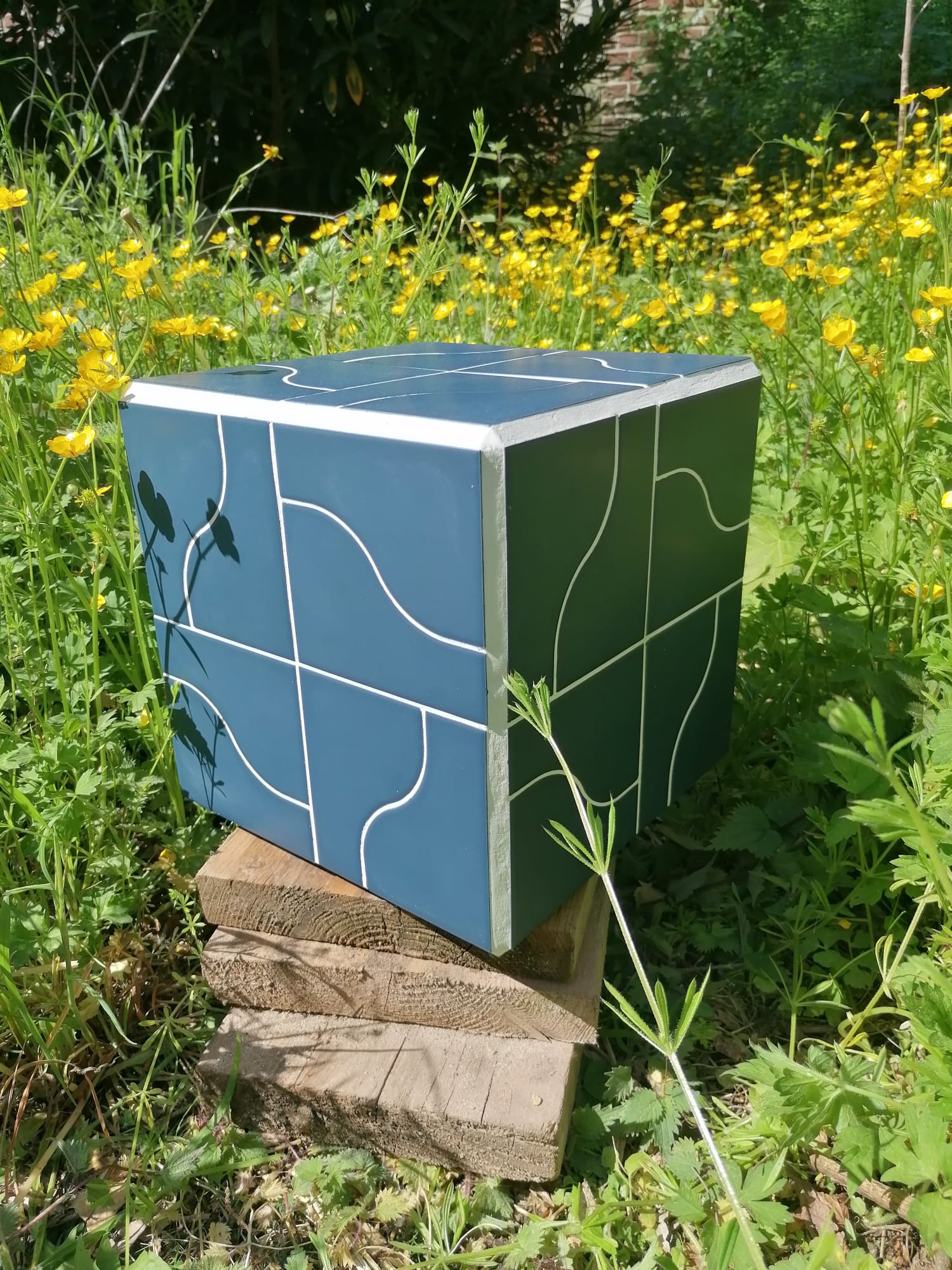 Une jolie petite Box aux carreaux bleu marine mat. Sa géométrie sinueuse apporte douceur et bien-être.