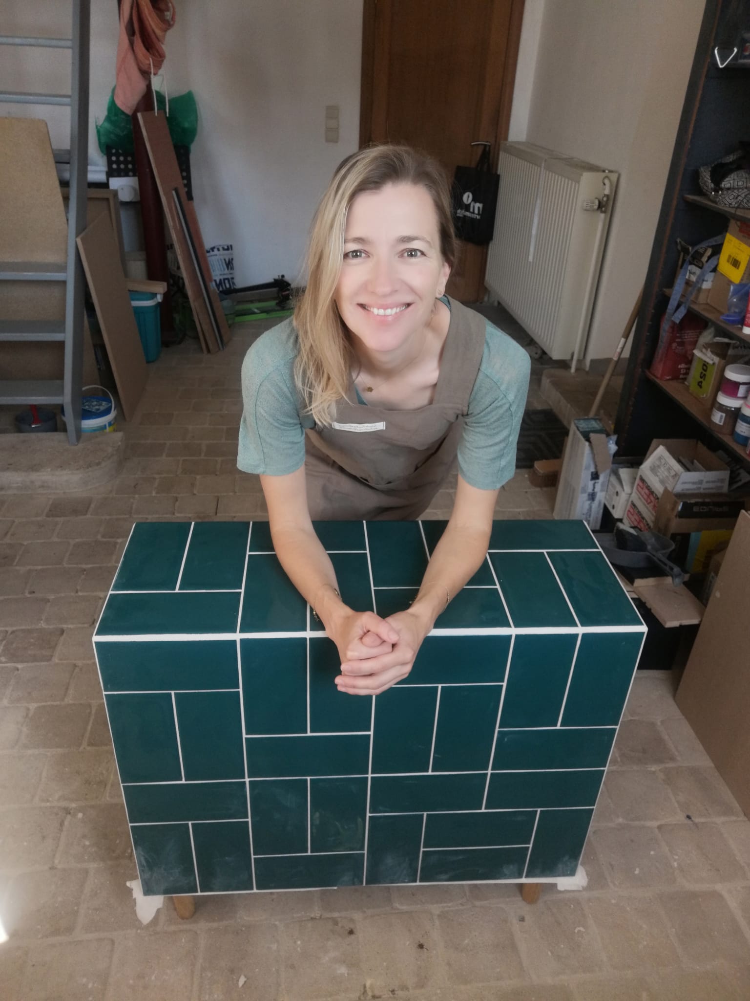 Les carreaux ont une texture qui reflètent la lumière. Les nuances de vert sont variées en fonction de la luminosité.